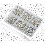 Bymitel 7200 Pieces 6 Mixed Sizes Glue Fix on Glass Rhinestones Round Crystal Gems Flatback for DIY ...