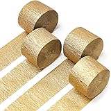 PartyWoo Gold Crepe Paper Streamers 4pcs 328ft Pack of Gold Crepe Paper for Wedding Birthday Baby Sh...