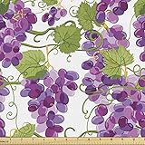 Lunarable Grape Fabric by The Yard, Vineyard Concept with Violet Tone Ripe Fresh Grapes Organic Viti...